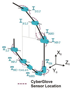 kinematics which are not accurately measured by the CyberGlove® in its default