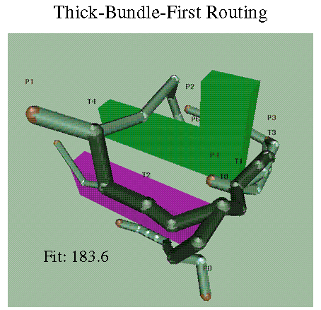 The routing produced by the "route the thickest bundle first" technique.