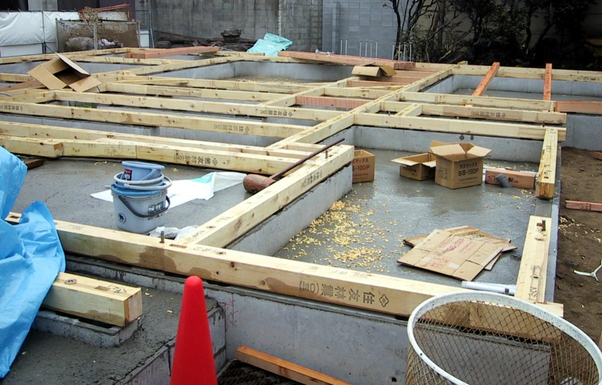the way mud sills are treated in the U.S. The timber sits atop a modern