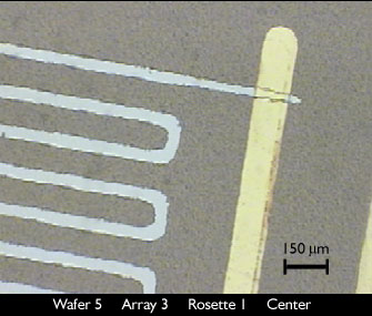 to polyimide, but lifted off the platinum at the junction wafer 1 - bad junction,